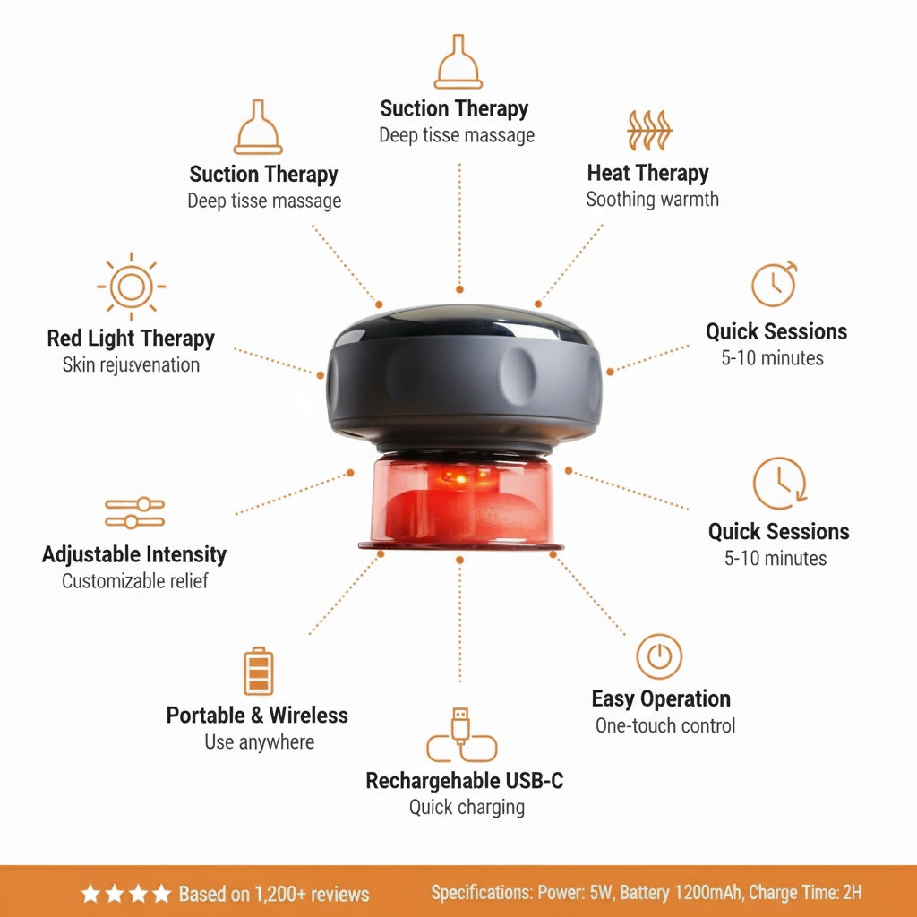Experience smarter cupping with adjustable suction, soothing heat, and red light therapy ā all in one portable device.