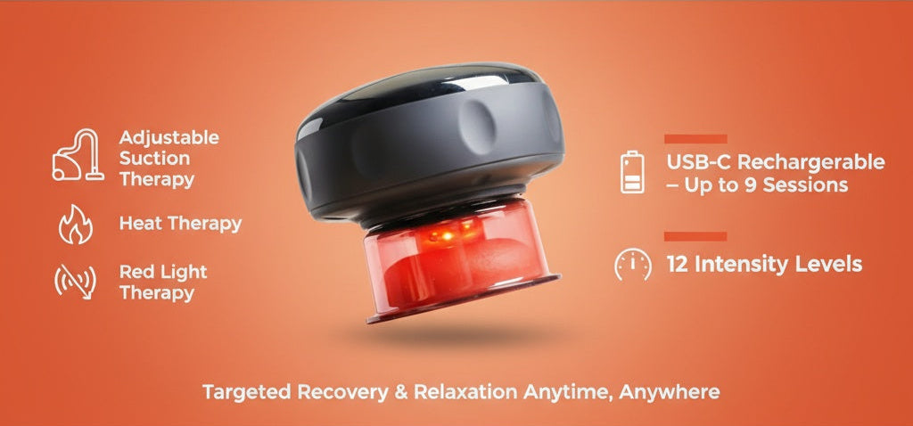 Discover targeted suction therapy with 12 intensity levels and soothing red light. Built-in heat adds warmth to melt away tension. Compact, wireless, and ready for quick 10ā15 minute sessions anywhere.
